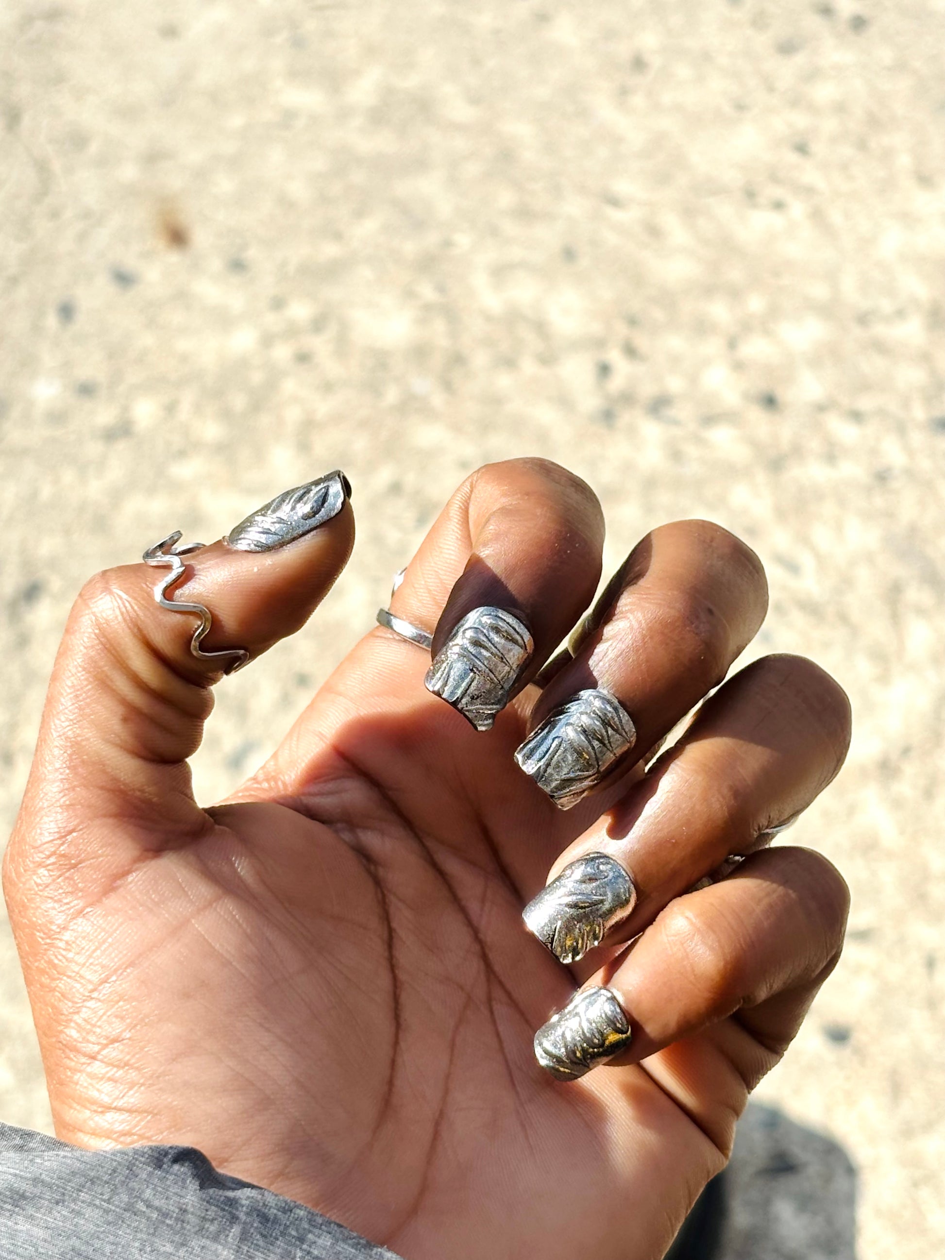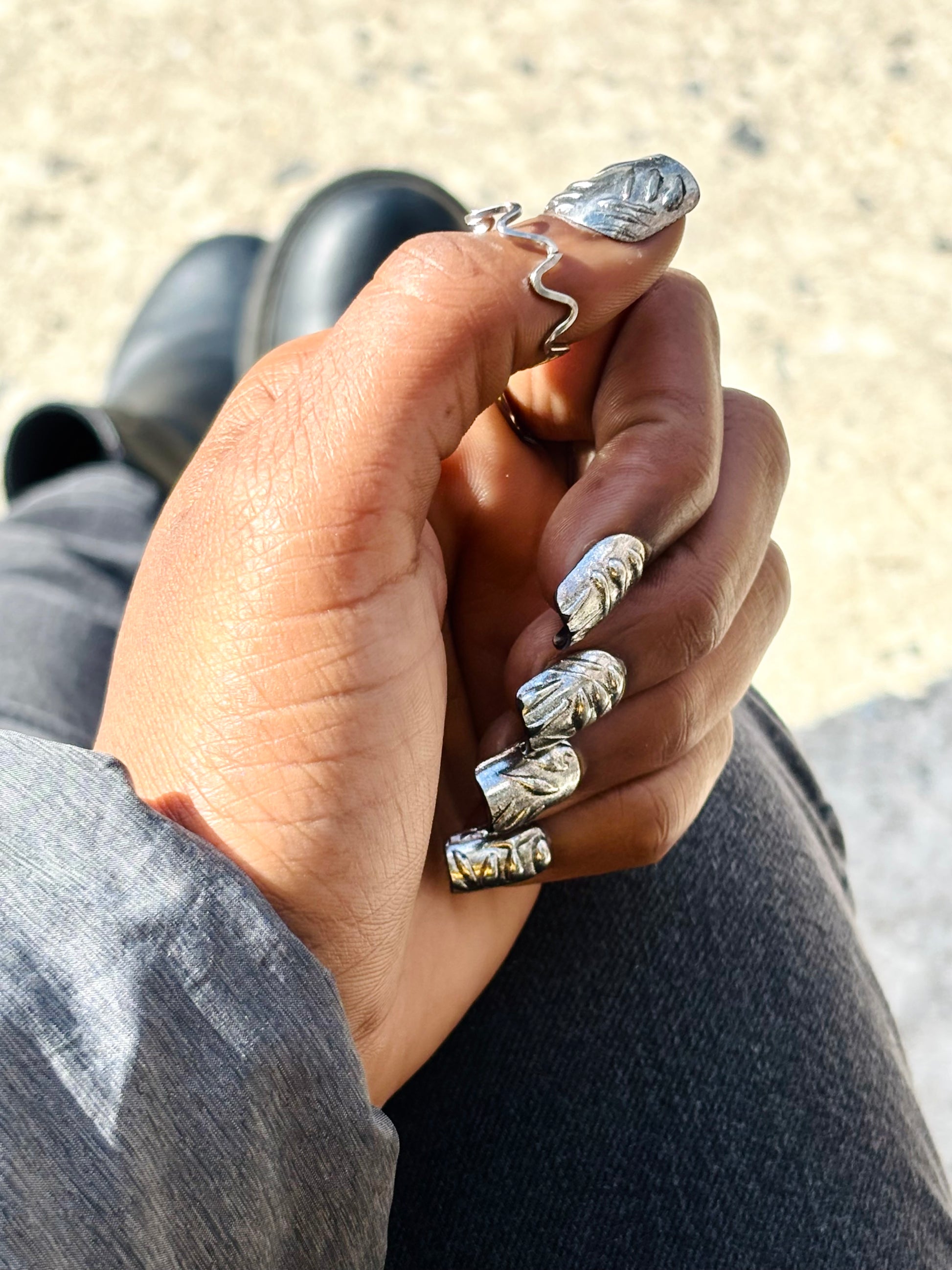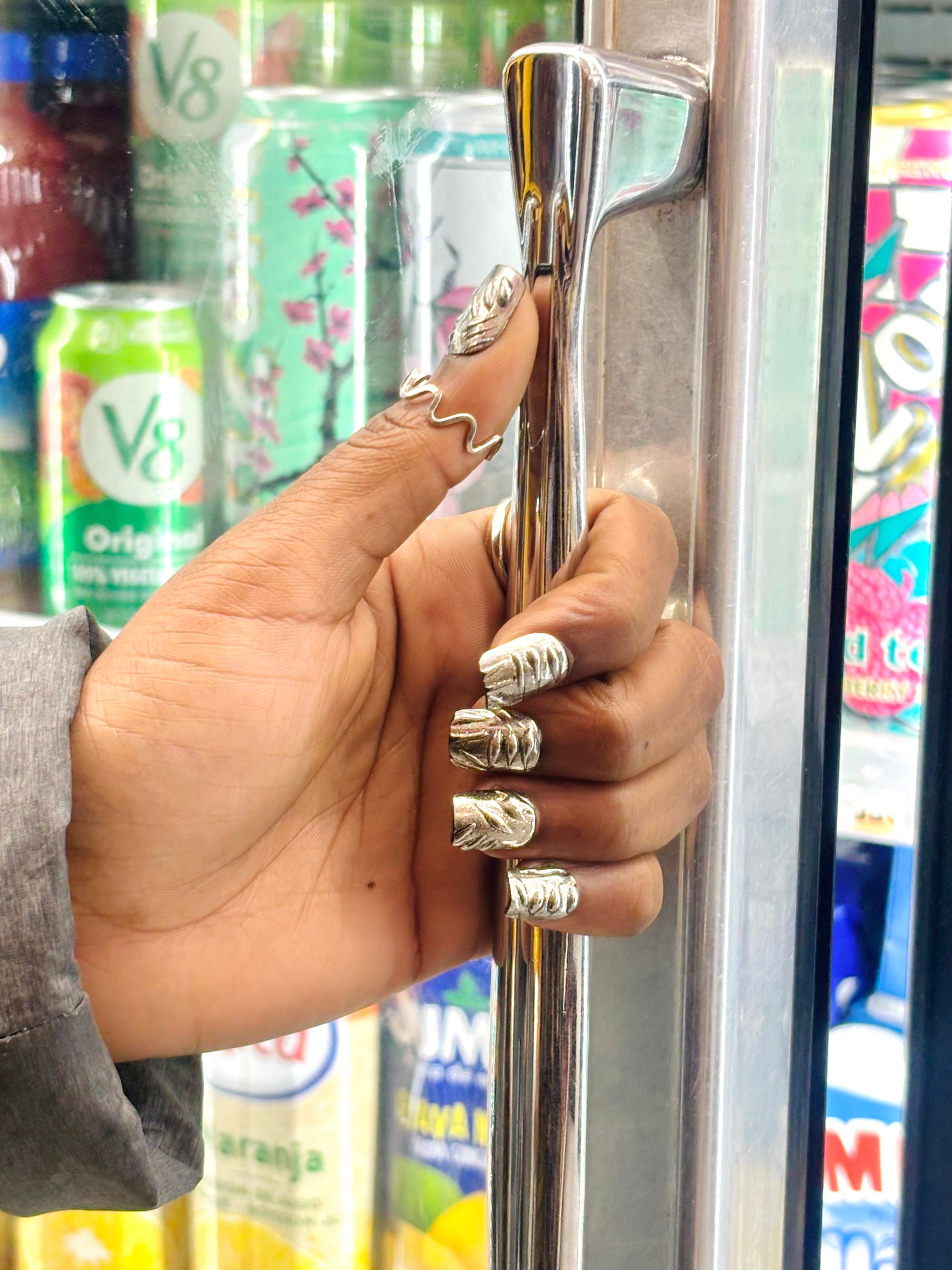 Clean, cool, and futuristic. Silver Circuit features a high-shine chrome base with raised 3D linework that adds just the right amount of edge. Short, sharp, and sculpted for everyday impact. This set is like wearable tech with a glam twist.